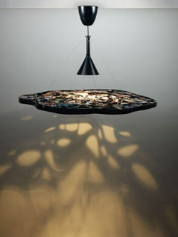 設(shè)計(jì)理念:時尚雜志圖案精美、質(zhì)感豐富,把最新的信息帶給讀者;可是每月推陳出新卻造成了嚴(yán)重的環(huán)境問題?!把拧るs01”是利用這些雜志,加上樹脂穩(wěn)固結(jié)構(gòu),制造成透光的平臺。光線透過平臺把圖案照到墻上,增添空間的氣氛。作品款式獨(dú)特,更能進(jìn)一步提升“資源再用”(Reuse)的價值和意義。