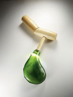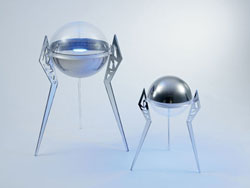 設(shè)計(jì)理念:幾何、結(jié)構(gòu)、力學(xué),構(gòu)出了人類的智慧?!逗J序讟恰?以三支金屬支架支撐著整個圓渾的巨球,表現(xiàn)出冷酷的金屬感。只要輕輕把圓球反轉(zhuǎn),燈光便會投射出各國不同的名勝,好像把全世界頓時連接起來,憧憬一片閃爍光芒,把渴望和夢想帶到眼前。
