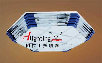 六邊型的以透明撥為主體,配合深藍(lán)色勾邊,滿足大戶型或酒店等場合照明需要。