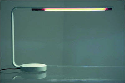 這款臺燈達到一種驚人的純圖形境界,擠壓鋁制成的單線條,再加上革新的小型熒光燈管,如此簡約的框架,好比“一根會發(fā)光的帶子”。