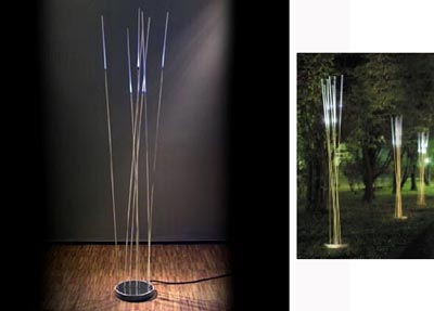 “邊緣”燈具系列是一個(gè)“令人驚訝地從墻上長(zhǎng)出來(lái)的立方體光源”。 燈座位于正方體被切去的那個(gè)角上,顏色上有白色版及三色版(紅、橙、紫)。“邊緣”系列還加入了一些Artemide出品的新款燈具,包括 Ora Ito設(shè)計(jì)的“蜿蜒線條”夾桌臺(tái)燈, Pierluigi Nicolin設(shè)計(jì)的圓柱形環(huán)境燈, Paolo De Lucchi設(shè)計(jì)的實(shí)心玻璃燈,以及 Klaus Begasse Comma 和 luminous Reeds 設(shè)計(jì)的戶(hù)外燈。