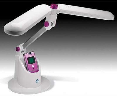 做一個(gè)時(shí)尚數(shù)碼人士是幸福的,你可以隨時(shí)隨地享受數(shù)碼設(shè)備帶給你的樂趣。但是,做一個(gè)總是需要帶著充電器的數(shù)碼人士就痛苦了。這款可以充電的臺燈——Recharging Lamp E887,你可以隨便調(diào)節(jié)它的兩個(gè)大耳朵,來達(dá)到你認(rèn)為理想的光照效果,同時(shí)可以為你的手機(jī)、PDA、iPod充電。它能夠提供140瓦的亮度,燈泡使用壽命8000小時(shí).