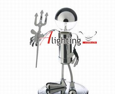 看過X戰(zhàn)警的都知道,機(jī)器人全身是由金屬組成的,金屬元素,一直代表著冷酷。當(dāng)金屬元素與武力結(jié)合起來的時候,就越發(fā)顯得冷酷。一個手握弓箭、斧頭等其他武器的鐵皮人偶,就可以將這種冷酷顯現(xiàn)出來了。燈光,可以將這種冷酷襯托得更加淋漓盡致,于是,就誕生了鐵皮人偶臺燈,冷酷的金屬元素照明。