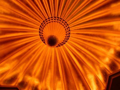 如美麗的葵花一樣的燈具,點(diǎn)亮的時(shí)候發(fā)出放射般的光,并且有黃、藍(lán)三種顏色。