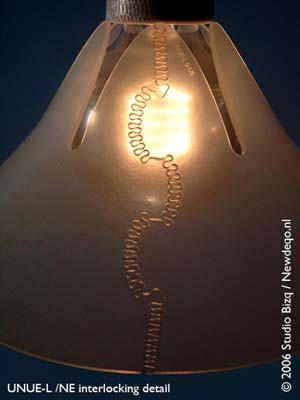 這款吊燈,顏色溫柔,采用磨砂燈罩和一般燈泡。但燈泡內(nèi)曲折的燈絲點(diǎn)亮后別有一番風(fēng)情,帶給夜晚歸家的人溫暖感受。