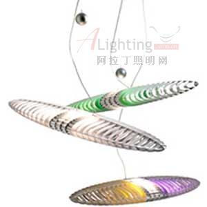 名為T(mén)itania(泰坦尼號(hào))的燈,體現(xiàn)了一種細(xì)致的審美角度,象機(jī)翼、飛船或一個(gè)外星太空船。既實(shí)用又充滿詩(shī)意。它的結(jié)構(gòu)包括:一系列反光的磨光鋁片,它們給予它橢圓的遮光結(jié)構(gòu)(帶250/150瓦的鹵素?zé)襞荩┝硗飧鼡Q不同的散光片整個(gè)燈體的拱價(jià)就會(huì)改變顏色。在不影響彌漫在環(huán)境中的光線的自身性能的情況下,造成不同弧度和特點(diǎn)的照明:緊湊、明確、毫不含糊和渾濁。