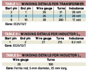 表1、2、3列出了電路中磁性元件的鐵心與繞組的數(shù)據(jù)。逆變器使用一個(gè)以MOSFET管為開(kāi)關(guān)器件的D類推挽外驅(qū)動(dòng)電路,IC3(SG3524)驅(qū)動(dòng)這一逆變器。外驅(qū)動(dòng)結(jié)構(gòu)可以在各種環(huán)境下確保電路無(wú)故障起動(dòng)。
