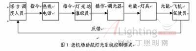 在老機(jī)場(chǎng),塔臺(tái)調(diào)度人員要開啟助航燈光,必須通過熱線電話將指令傳遞給燈光站值班人員,再通過值班人員來開啟調(diào)光器,從而打開燈光系統(tǒng)。(見圖1)
