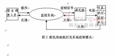 但在新機(jī)場(chǎng),由于安裝了計(jì)算機(jī)監(jiān)控系統(tǒng),塔臺(tái)控制人員可以在塔臺(tái)上直接控制所有燈光回路,并且還可以實(shí)時(shí)監(jiān)測(cè)系統(tǒng)運(yùn)行狀態(tài)。(見圖2)