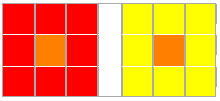 2、不同色相相鄰時(shí),都傾向于將對(duì)方推向自己的補(bǔ)色?!?/FONT>
