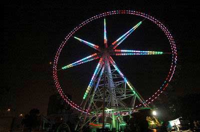 自2004年以來(lái),錦江樂(lè)園每年仲夏都舉辦游園晚會(huì)活動(dòng)。今夏的活動(dòng)更為新穎、時(shí)尚,別具一格。今年游園晚會(huì)開(kāi)幕前,樂(lè)園耗時(shí)一個(gè)多月,對(duì)中國(guó)首座百米摩天輪——“上海大轉(zhuǎn)盤(pán)”的彩燈進(jìn)行了升級(jí)換代。新型燈飾節(jié)能而不失艷麗,通過(guò)電腦程控,五彩燈光隨著大轉(zhuǎn)盤(pán)的緩緩轉(zhuǎn)動(dòng),變換出奇彩異圖,與星月斗艷。另外,“童話卡通燈會(huì)”。“尼樂(lè)斯騎鵝旅行”、“海底世界”、“果蔬園”、“杰克與豌豆”等膾炙人口的世界著名童話故事首次在樂(lè)園以卡通燈會(huì)的方式演繹。