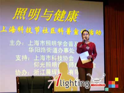 當照明逐漸步入人們生活領域時,照明設計師和專家學者繼續(xù)不遺余力地為營造更美好的城市景觀及室內(nèi)照明環(huán)境創(chuàng)造條件。如何讓更多的人分享照明應用成果,體驗舒適愉悅的照明環(huán)境如何改善人們的生活質(zhì)量,感受綠色照明文化成為了業(yè)界與學術界共同探討的問題。2007年5月25日,由上海市照明學會普及委員會及上海華陽街道辦事處主辦,仰光照明設計師成長基金及上海市科技協(xié)會支持,“照明與健康”主題宣講活動在上海華陽社區(qū)順利拉開帷幕。