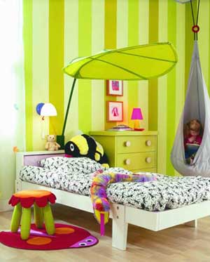 把孩子的空間設(shè)計(jì)得五彩繽紛,不僅適合兒童天真的心理,而且鮮艷的色彩在其中會(huì)洋溢起希望與生機(jī)。對(duì)于性格軟弱過于內(nèi)向的孩子,宜采用對(duì)比強(qiáng)烈的顏色,刺激神經(jīng)的發(fā)育。而對(duì)于性格太暴躁的兒童,淡雅的顏色,則有助于塑造健康的心態(tài)。環(huán)境的顏色對(duì)于孩子成長具有深遠(yuǎn)的影響,比如綠色對(duì)兒童視力有益,藍(lán)色、紫色可塑造孩子安靜的性格,粉色、淡黃色適合培養(yǎng)女孩子溫柔、乖巧……對(duì)于大紅、橘紅等過于艷麗的顏色,最好不要在兒童房大面積使用,它會(huì)讓兒童更加興奮,但可小面積點(diǎn)綴。
