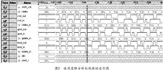 圖5所示是用邏輯分析儀觀察到的波形圖。從圖5可以看出,通過LVDS信號線可使此系統(tǒng)在10米處穩(wěn)定地傳輸100 Mbps的信號。