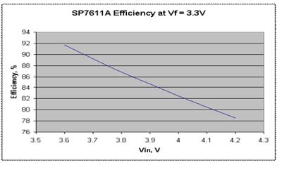 圖5:實際測試的SP7611A效率曲線。