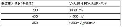 表:電流放大倍數(shù)與VLED的關系。