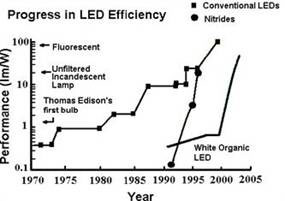圖1 發(fā)光二極管效率進(jìn)步年度表
