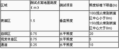 歌舞廳場(chǎng)內(nèi)的區(qū)域可分為表演區(qū)(舞臺(tái))、自?shī)蕝^(qū)(舞池)、觀賞休息區(qū)(席座區(qū))和通道四部分。歌舞廳照明系統(tǒng)必須符合我國(guó)文化部行業(yè)標(biāo)準(zhǔn)(WH0201-94)中的歌舞廳照明及燈光污染限定標(biāo)準(zhǔn)。具體說(shuō)來(lái),歌舞廳照明系統(tǒng)至少要達(dá)到WH0201-94標(biāo)準(zhǔn)規(guī)定的照明標(biāo)準(zhǔn)下限值(參見(jiàn)附表);對(duì)激光、紫外線和頻閃的限制是:激光一般不應(yīng)射向人體,尤其是眼部,直接照射或經(jīng)反射后間接射向人體時(shí),其波長(zhǎng)必須在380~780nm之間,最大容許輻射量為1.4×10-6Wcm-2;紫外線波長(zhǎng)必須在320~380nm之間,最大容許輻射量為8.7×10-6Wcm-2;頻閃頻率要低于6Hz,頻閃燈具不宜長(zhǎng)時(shí)間連續(xù)使用。