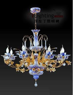 宛若細瓷的寶藍色和溫潤的雪白色結(jié)合在一起,配合豪華的黃金色,這盞吊燈充滿十足的歐式風情。