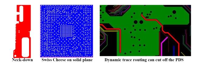 通常在交流分析中,電源地之間的輸入阻抗是用來衡量電源供電系統(tǒng)特性的一個重要的觀測量。對這個觀測量的確定在直流分析中則演變成為IR壓降的計算。無論在直流或交流的分析中,影響電源供電系統(tǒng)特性的因素有:PCB的分層、電源板層平面的形狀、元器件的布局、過孔和管腳的分布等等。