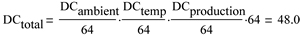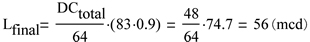 從上可見,運(yùn)用48的組合點(diǎn)校正值即可得到56mcd的期望亮度。請(qǐng)注意,由于溫度引起亮度下降,故本計(jì)算中的起始電流被設(shè)置為起始生產(chǎn)電流的90%。
