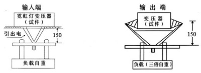 輸入額定電源電壓變壓器的輸出端聯接外徑為12mm,充氣壓強為1.07-1.33Kpa(8-10托)的氖氣霓虹燈。適當調整燈管的長度。使燈管工作電流為額定輸出短路電流的0.8±0.025,該長度的氖管即為變壓器的額定負載(一般額定負載以燈管有效發(fā)光長度標出)。