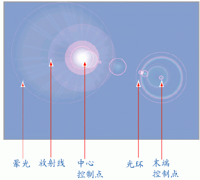 繪制時拖動光標并按住Ctrl,可改變眩光中心點和光環(huán)間的距離;