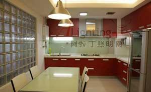 廚房、衛(wèi)生間和過道里一般使用吸頂燈,因為這些地方需要照明的亮度不大,且水汽大、灰塵多,用吸頂燈便于清潔,而且利于保護(hù)燈泡。廚房中燈具要安裝在能避開蒸氣和煙塵的地方,宜用玻璃或搪瓷燈罩,便于擦洗又耐腐蝕。盥洗間則應(yīng)采用明亮柔和的燈具,同時燈具要具有防潮和不易生銹的功能。