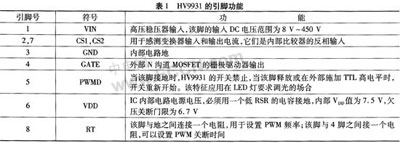 HV993l采用8引腳SOIC和DIP封裝,引腳排列如圖1所示。引腳功能如表1所列。