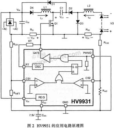 基于HV9931的離線PFC LED驅(qū)動器電路工作原理如圖2所示。