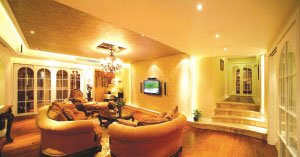 燈光運(yùn)用 裝修材質(zhì)的色彩是固有的,只有配上合適的照明,才能更好地體現(xiàn)出質(zhì)感。客廳的照明配置會(huì)運(yùn)用主照明和輔助照明的燈光交互搭配,來(lái)營(yíng)造客廳的氛圍。主照明提供客廳空間大面積的光源,通常擔(dān)任此任務(wù)的是光源來(lái)自上方的吊燈、吸頂燈和日光燈等。依主人的喜好可以有不同風(fēng)格的搭配,如氣派豪華的雪花石吊燈、水晶燈,富麗堂皇的金黃色裝飾燈等都是不錯(cuò)的選擇。為增強(qiáng)客廳燈光照明效果,很多設(shè)計(jì)師還會(huì)選擇各色燈帶,如利用白色自然光燈帶增加居室的時(shí)尚感,利用米黃燈帶營(yíng)造溫馨感,而藍(lán)色、紫色則能營(yíng)造出神秘的色彩感覺。而一些尺寸較小的燈具,如壁燈、射燈、筒燈等,則作為輔助照明,加強(qiáng)光線層次感,突出局部材質(zhì)或飾物。