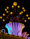 目前的光源主要采用霓虹燈和LED燈,在畫面上的右邊圓圈燈是霓虹燈,左邊的直條燈,半圓燈和樓頂?shù)膹澋稛魹長(zhǎng)ED……
