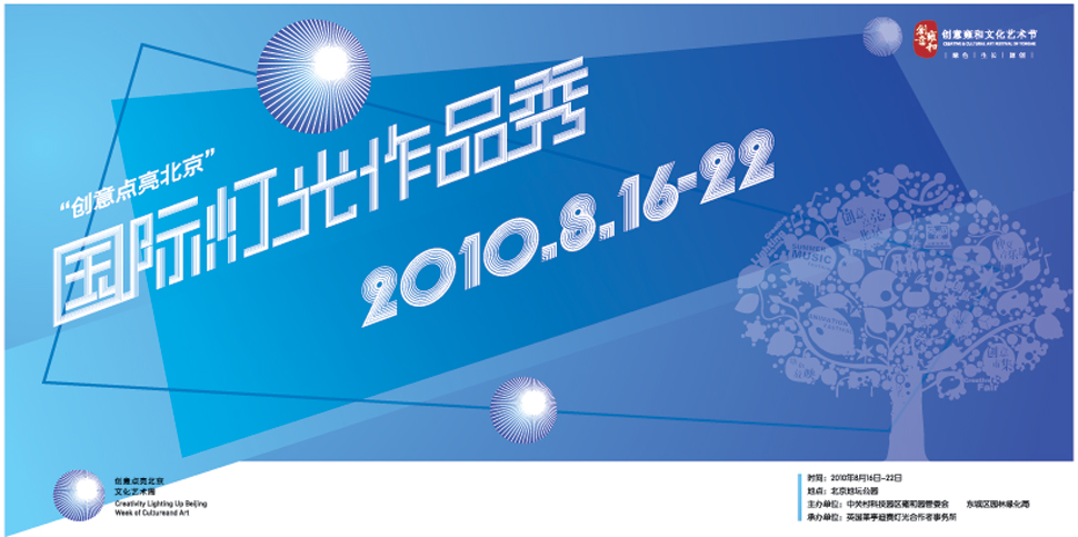 “創(chuàng)意點亮北京” 國際燈光作品展,以法國里昂燈光節(jié)為藍圖,由奧運會、世博會燈光總設(shè)計師沙曉嵐傾力支持、英國萊亭迪賽燈光合作者事務(wù)所(LDPi)承辦,邀請了如展望、仲松、馬曉威、丁平、鄭見偉,許東亮、劉峰等國際知名設(shè)計師的參與。