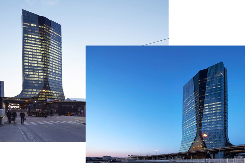 坐落在法國馬賽市的法國國家航運公司總部大樓以它高聳入云的垂直設(shè)計聞名于世。外墻的曲線形剖面圖是整個建筑的一大亮點,從建筑塔的類型學(xué)概念上看,這樣的設(shè)計凸顯了建筑的剛性設(shè)計和靈動的運動感。