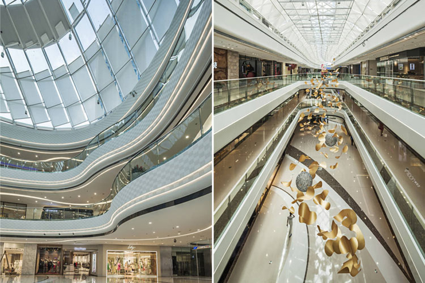 南海萬達(dá)廣場的巨大體量和高度必將成為廣佛連接處的地標(biāo)性建筑和空間景觀,對于這一設(shè)計(jì)課題,外立面方案設(shè)計(jì)力求表達(dá)一種歡樂與升騰的意向,希望以此與項(xiàng)目本身的特點(diǎn)符合,同時(shí)提升該區(qū)域的形象。為表現(xiàn)這一構(gòu)思,設(shè)計(jì)創(chuàng)意采用了花與飄帶的意向。廣佛地區(qū)素稱花城,飄帶的加入加強(qiáng)了歡樂與升騰感的表達(dá),這一意向同時(shí)暗合了地區(qū)的隱性文化。