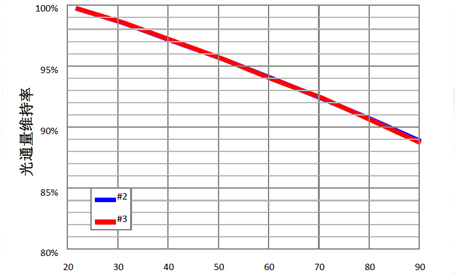 從圖 4~圖 6 結(jié)果看來,從 20℃到 90℃的溫度變化下,光通量衰減了 11%左右,衰減率約為 0.16%/℃,相關(guān)色溫變化在 50K 以內(nèi),色坐標(biāo) x 變化 在 0.001 以內(nèi),色坐標(biāo) y 變化在 0.006 以內(nèi)...... [詳細(xì)]