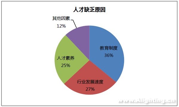 珠海韜播平板照明有限公司董事長姚懷舉認為LED照明行業(yè)高端專業(yè)技術(shù)人才嚴重不足,造成這種狀況的原因是中國產(chǎn)業(yè)在培養(yǎng)專業(yè)人才的投入和管理不足及技術(shù)人才缺乏深度鉆研的追求。從行業(yè)環(huán)境看,近幾年LED井噴式的發(fā)展,吸引了大規(guī)模資金和人員進入LED行業(yè),導(dǎo)致行業(yè)規(guī)模以及企業(yè)數(shù)量急速膨脹,人才的需求變了剛需,大量的崗位需要專業(yè)的人才才能完成。教育制度落后于行業(yè)發(fā)展速度,這是導(dǎo)致LED技術(shù)人才匱乏最重要的原因。