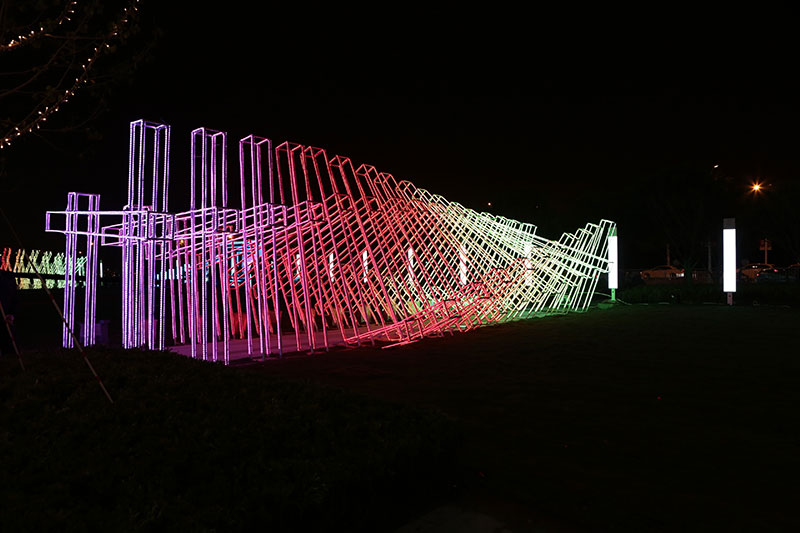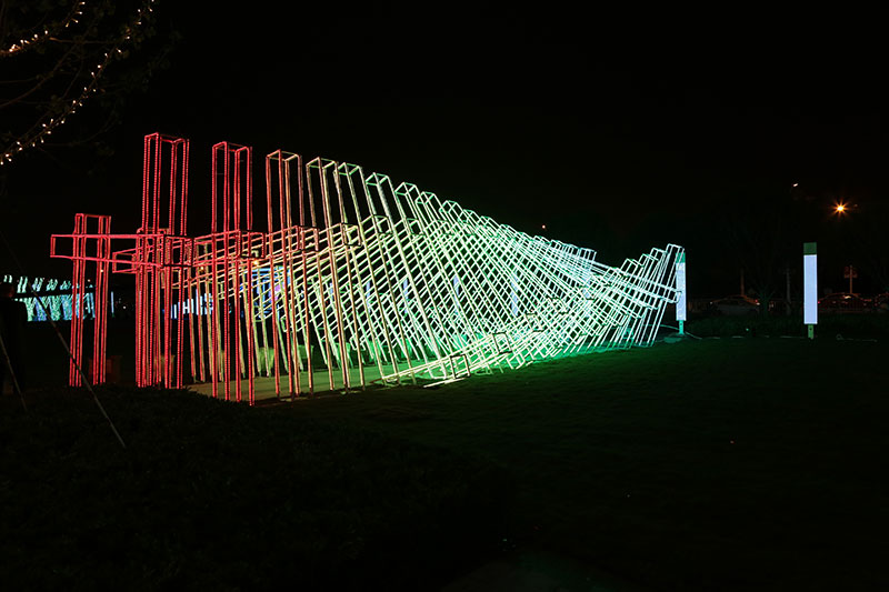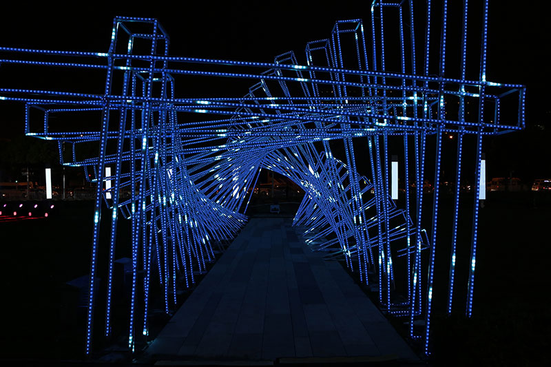 歐普景觀亮化設(shè)計師從五維空間中螺旋狀無限延伸的時間層次吸取靈感,創(chuàng)作出“光之通道”,它不僅是光影的通道,更是時光的隧道,更寓意著被智慧照亮的未來。同時,這一立體構(gòu)成的表現(xiàn)手法,也與萬象城打造的“城市立體空間”的概念不謀而合。