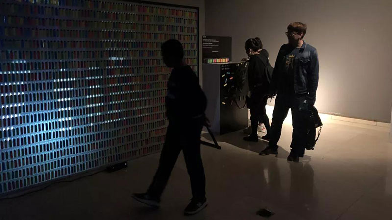 “燃?我”交互式藝術(shù)裝置,運用感應器捕捉觀眾動搖實時投射到屏幕中。你在則亮,你舞則“燃”。你的行為舉止可以在感應區(qū)域,一一被屏幕記錄進行實時的互動體驗。
