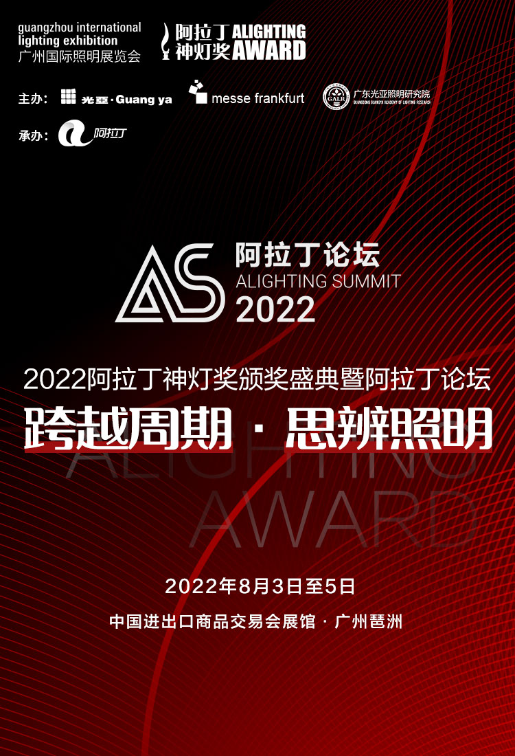 作為最具影響力的照明行業(yè)盛會——阿拉丁論壇同期將舉行 “有著照明行業(yè)奧斯卡獎”之稱的2022阿拉丁神燈獎頒獎盛典,通過評獎頒獎樹立領(lǐng)域標(biāo)桿,發(fā)掘、匯聚中國照明行業(yè)先 進(jìn)產(chǎn)品、技術(shù)、設(shè)計(jì)及項(xiàng)目案例成果。
