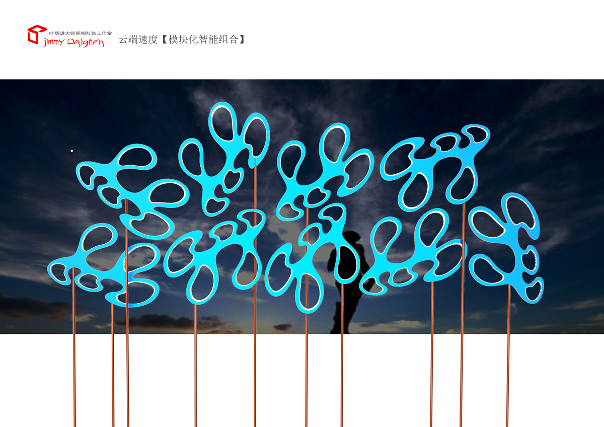 模塊化的重合與變化。它有趣的是可以根據(jù)地段、區(qū)域及不同的地況位置,設置不同的模塊組合,可以有變化又在統(tǒng)一元素當中展現(xiàn)。是一個很好的組合造型 藝術(shù)燈具,以寓意著寧波快速發(fā)展的未來!