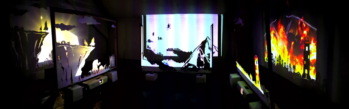 我們小組想表現(xiàn)出一個完整的冒險故事。冒險故事是虛幻的,宛如“光影”在眼前轉(zhuǎn)瞬即逝,碰不到也摸不著,但它們都能帶給我們感官上的刺激和深刻印象。其共通之處讓我們決定用“光影”的形式來表現(xiàn)這個故事。