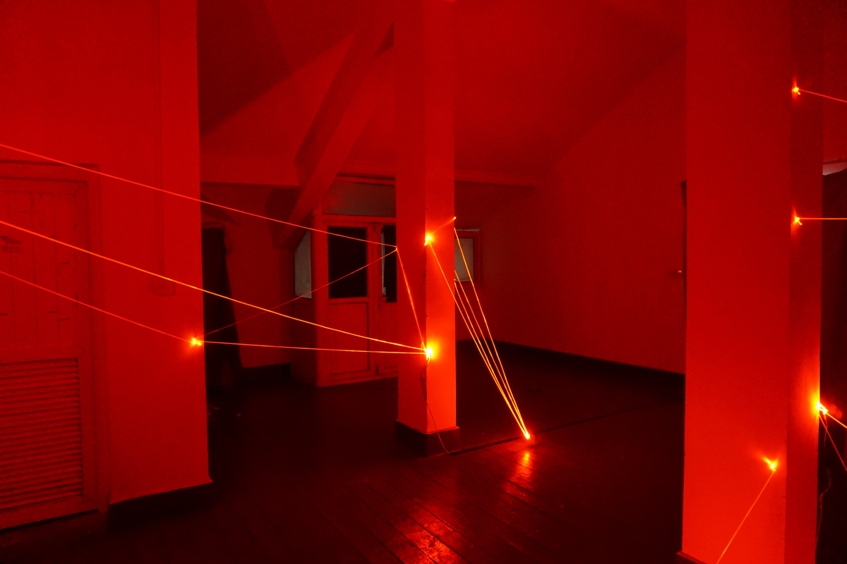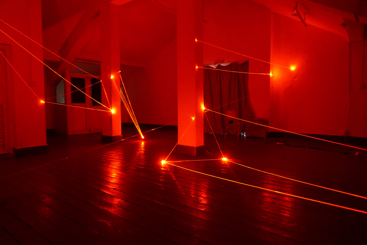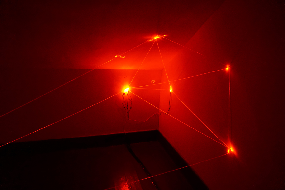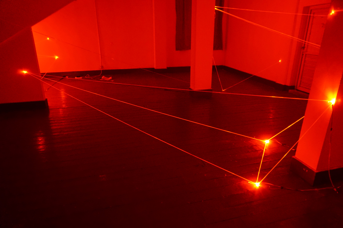 小的時(shí)候我們看的特工電影里經(jīng)常有這樣的場(chǎng)景,錯(cuò)綜復(fù)雜的紅外線,機(jī)關(guān)一觸即發(fā),這卻阻止不了探險(xiǎn)者們的步伐,生活中的困難就像是這一道道紅外線,而我們則應(yīng)像勇者一樣,披荊斬棘,步步向前,抵達(dá)光明。這個(gè)裝置旨在通過(guò)這個(gè)裝置找回童年看特工電影的感覺(jué),讓自己和所有參與到這個(gè)裝置中的人當(dāng)一回“特工” 。利用光纖設(shè)下重重障礙,再現(xiàn)探險(xiǎn)的場(chǎng)景,通過(guò)重重障礙就可以找到寶藏。在觀賞的同時(shí),參與其中,趣味性與互動(dòng)性相結(jié)合。在一個(gè)復(fù)古的空間中打造一個(gè)具有科技感的場(chǎng)所,把這個(gè)場(chǎng)所重新激活,賦予其新的生命力,讓人們參與進(jìn)來(lái),發(fā)掘這個(gè)場(chǎng)所的活力。