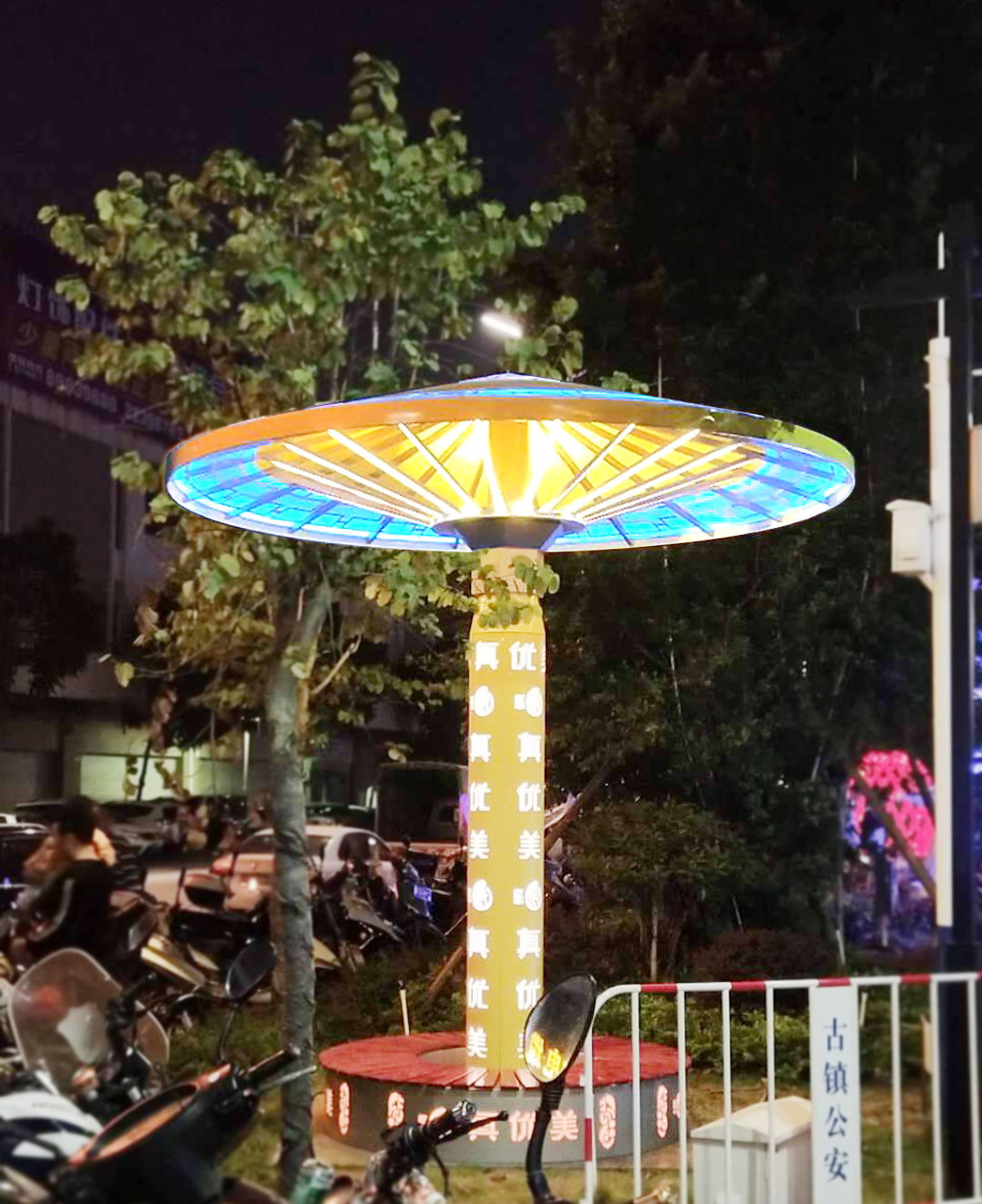 人與自然恰當(dāng)和諧,特色亦簡潔,大方和便民,真優(yōu)美在提倡自然和諧與理性設(shè)計為原則上原型選擇以古典撐傘為切入,悠久歷史,優(yōu)雅高貴的獨特形象特色,燈身比例均勻,造型新穎且靈活融合在不同場所空間,內(nèi)部結(jié)構(gòu)嚴(yán)密,層次統(tǒng)一有規(guī)律,燈光亦是虛實有序,不同的亮度漸退使燈身整體更覺紳士,相輔相成,宜賞宜應(yīng),典雅且人性。