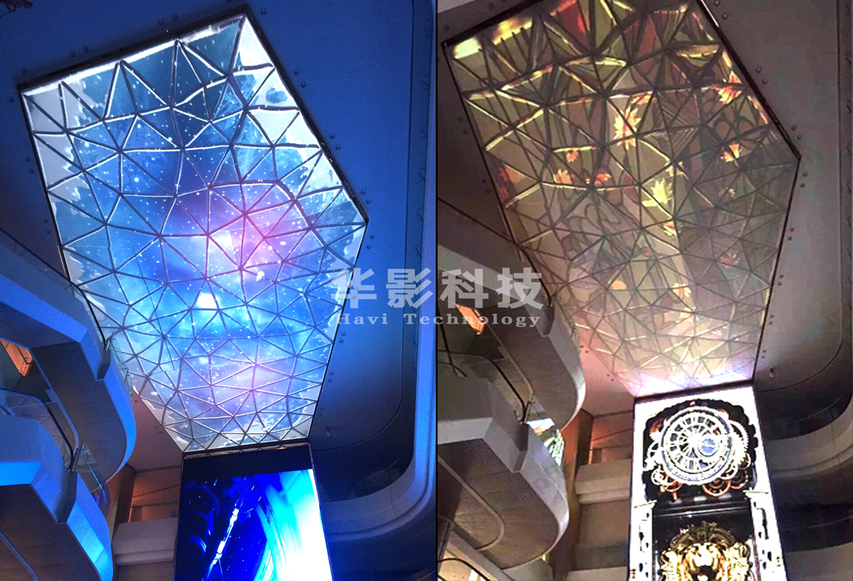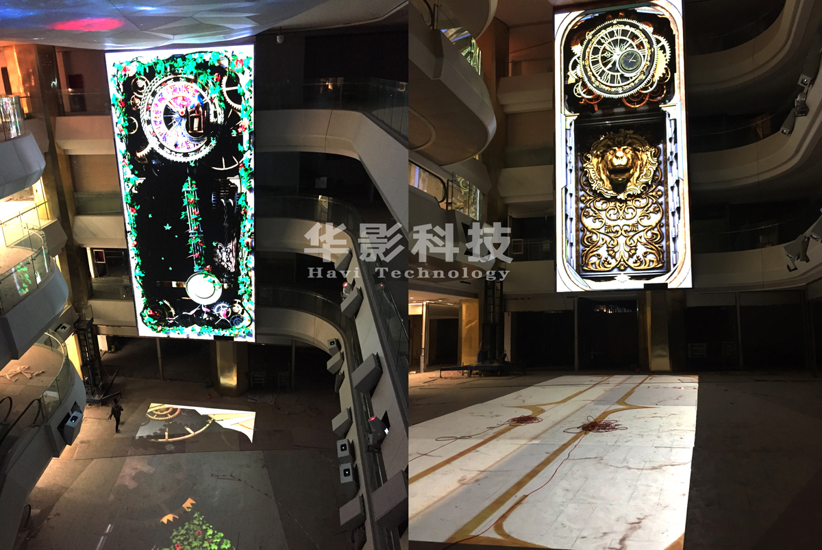 7臺(tái)12000流明、8臺(tái)7000流明投影燈融合方式投射。