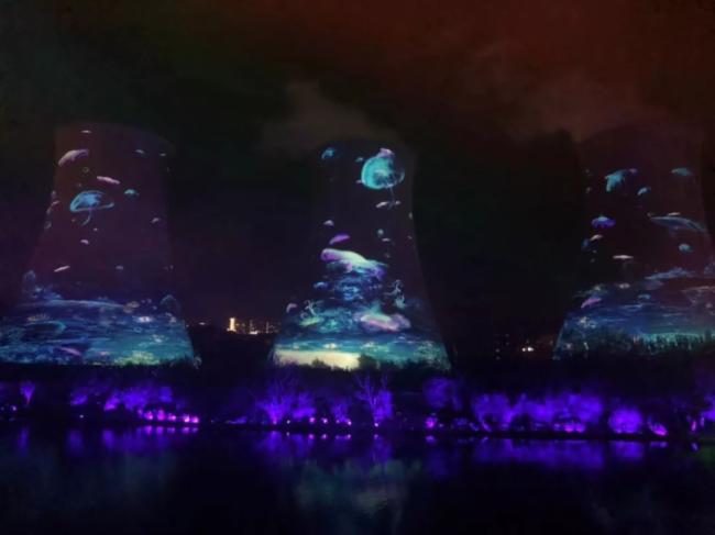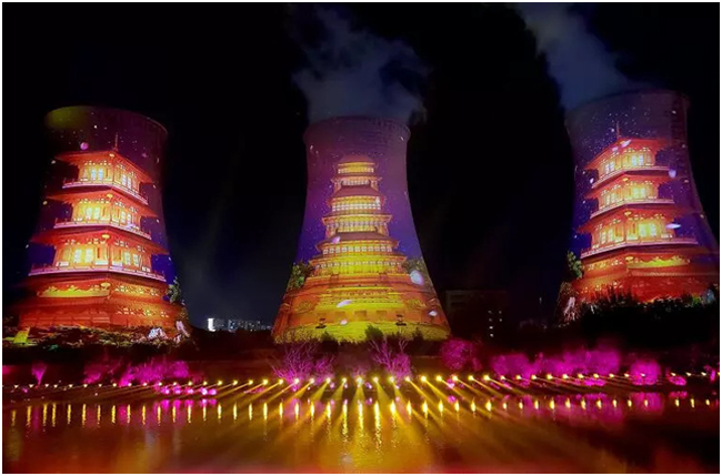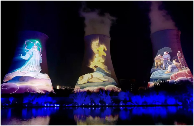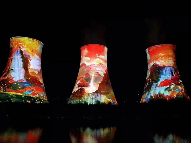 高塔投影秀運(yùn)用12臺4萬流明4K雙色激光旗艦級工程投影機(jī),開創(chuàng)性地以近百米發(fā)電廠冷卻水塔為背景,在超過10000平方米的高塔“屏幕”上,演繹了一場氣勢恢宏的傳奇劇目,炫目的投影效果讓世人嘆為觀止。