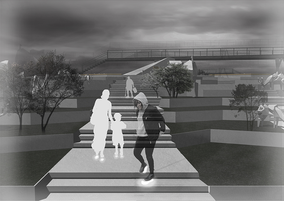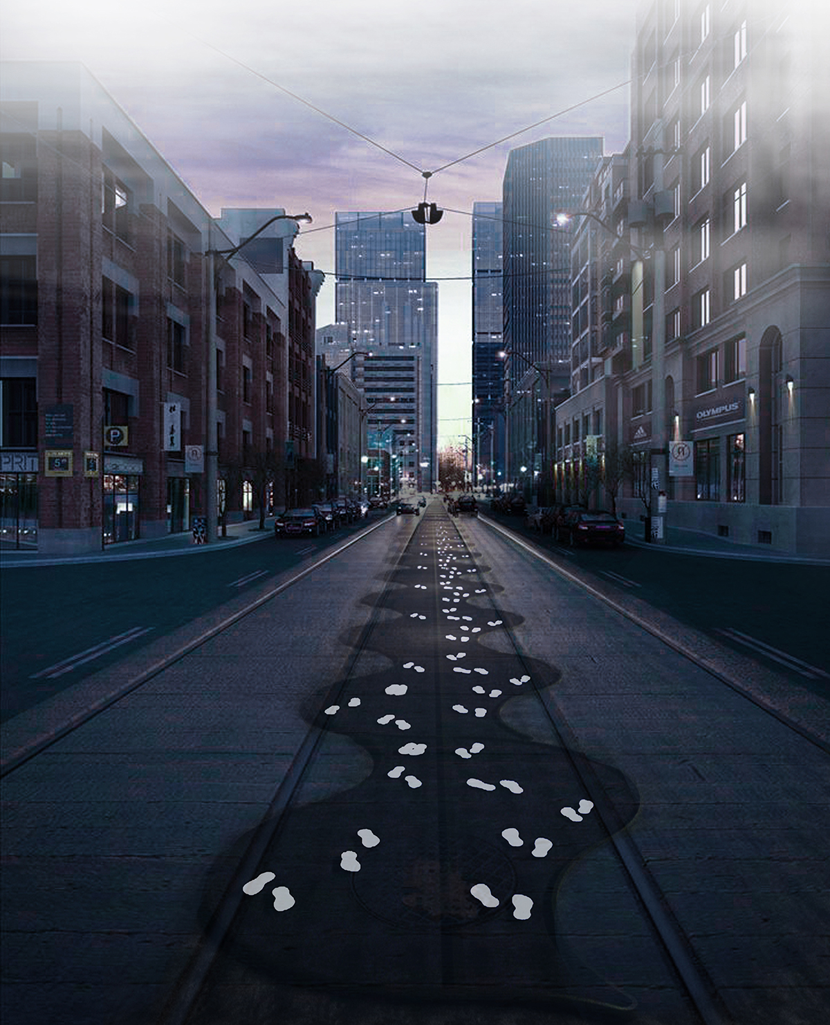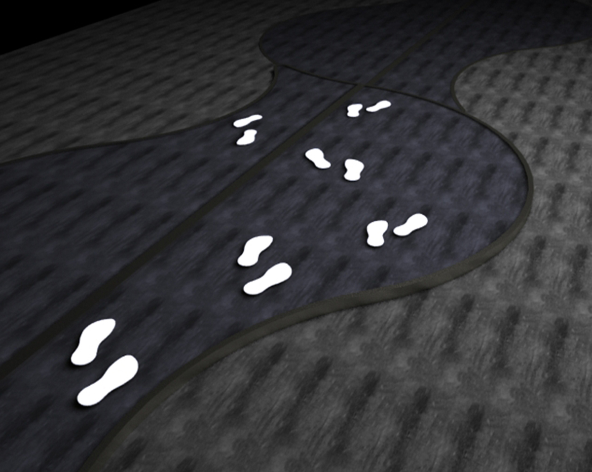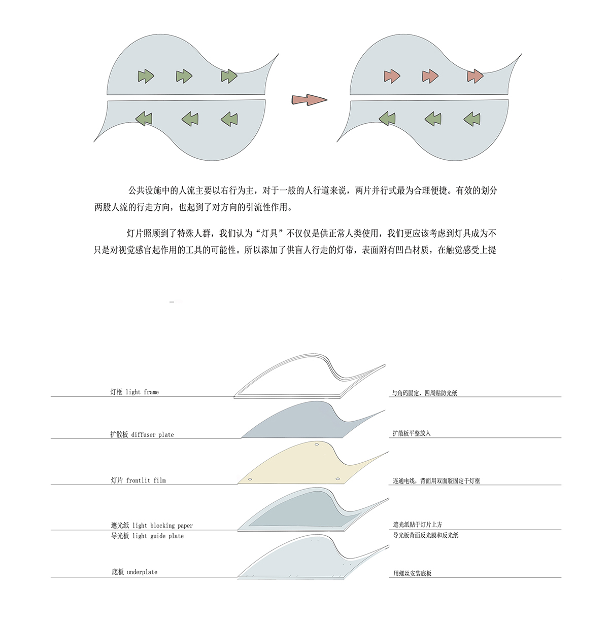鯤,傳說中的大魚,生活在北邊幽深的大海北冥之中。在我們的設計中廣闊的路面亦如一望無際的大海,路中鑲嵌的感應裝置鋪地,相當于大魚(鯤),這個照明感應裝置在環(huán)境中存在的神秘感,如同鯤在北冥的存在。人們行走期間,與鯤感應互動,與城市海洋共呼吸。在保障道路安全的同時,重構親和生動的城市街景燈光。